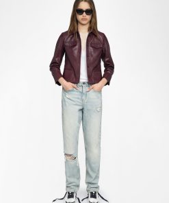 Zadig & Voltaire Mujer Ropa Chaqueta Visko Cuero Arrugado | Negro