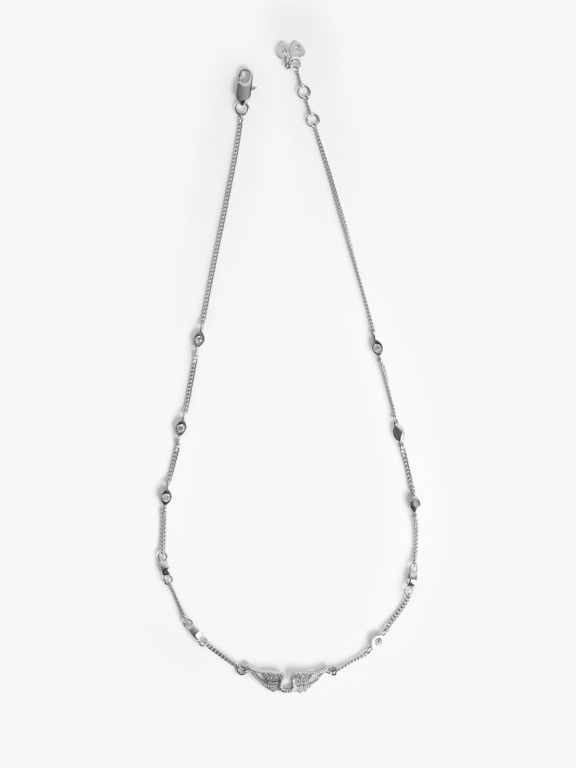 – Incrustaciones y colgante de alas adornados con strass plateados