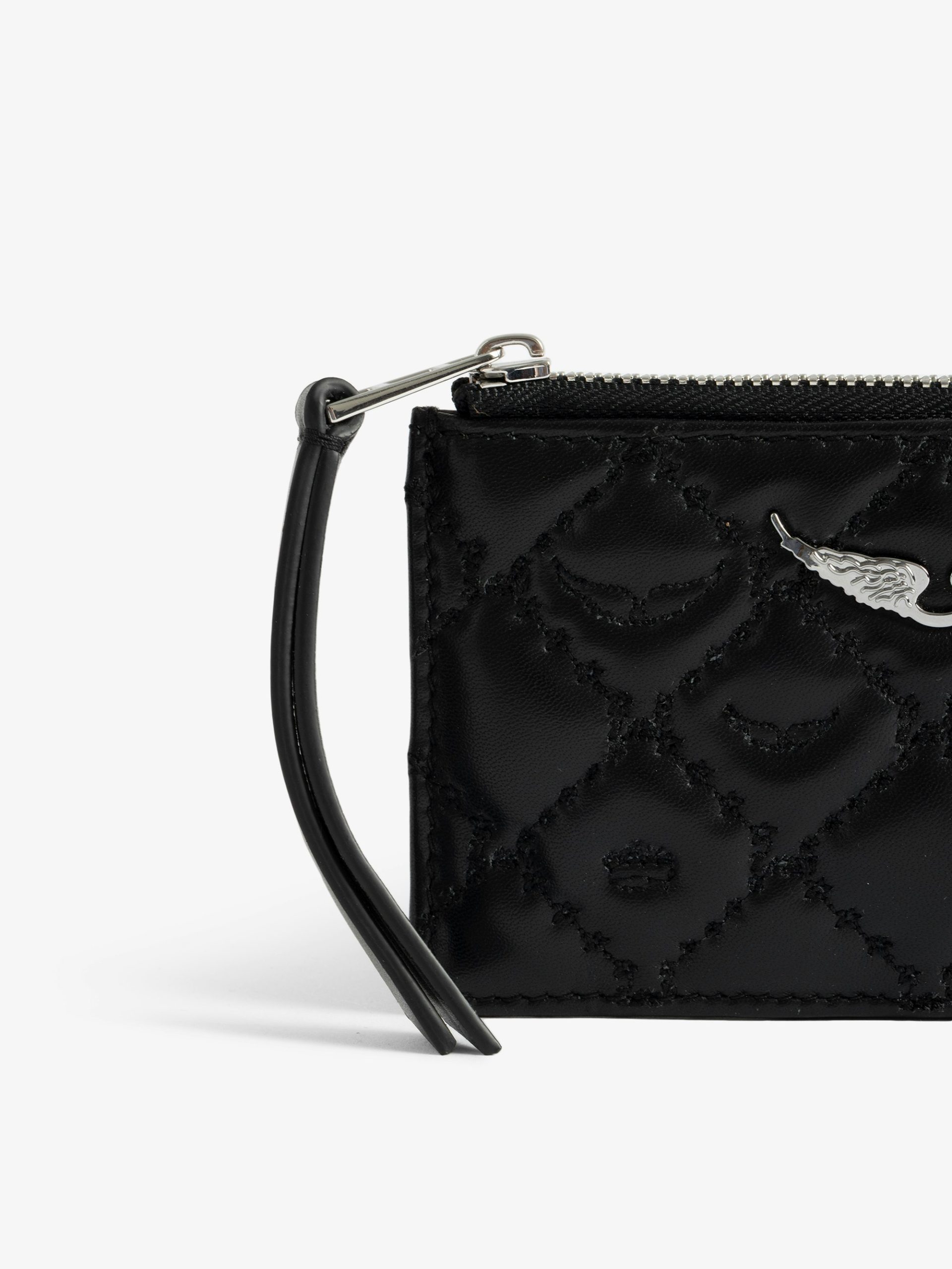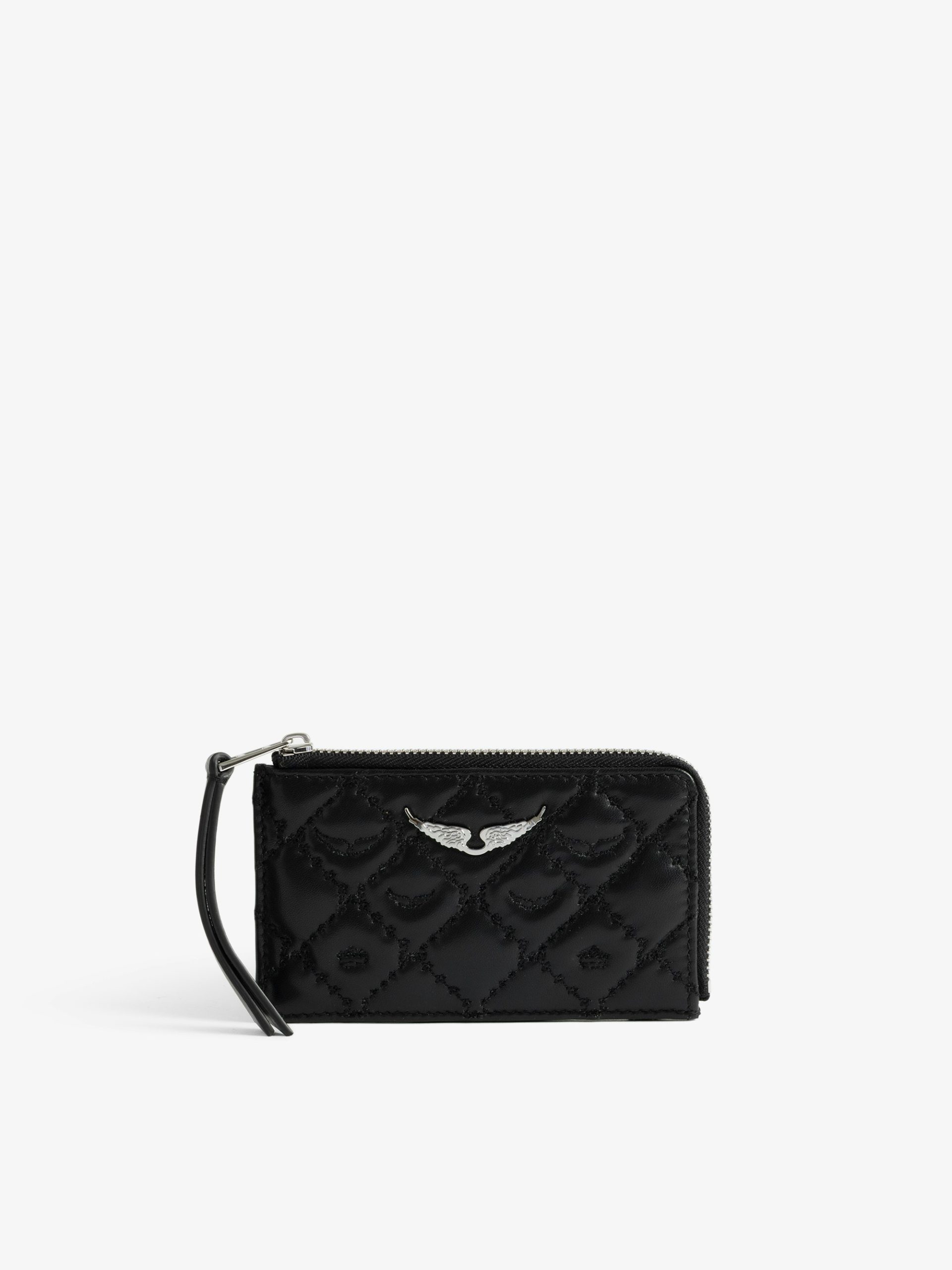 – Tarjetero de piel acolchada con animación monograma- 4 ranuras para tarjetas- Un bolsillo plano y un bolsillo con cremallera- Firma alas