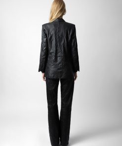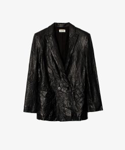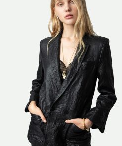 Zadig & Voltaire Mujer Ropa Chaqueta Visko Cuero Arrugado | Negro