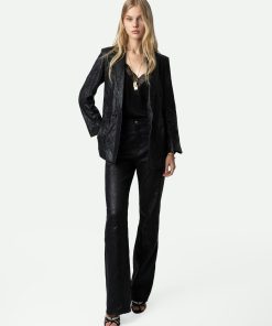 Zadig & Voltaire Mujer Ropa Chaqueta Visko Cuero Arrugado | Negro