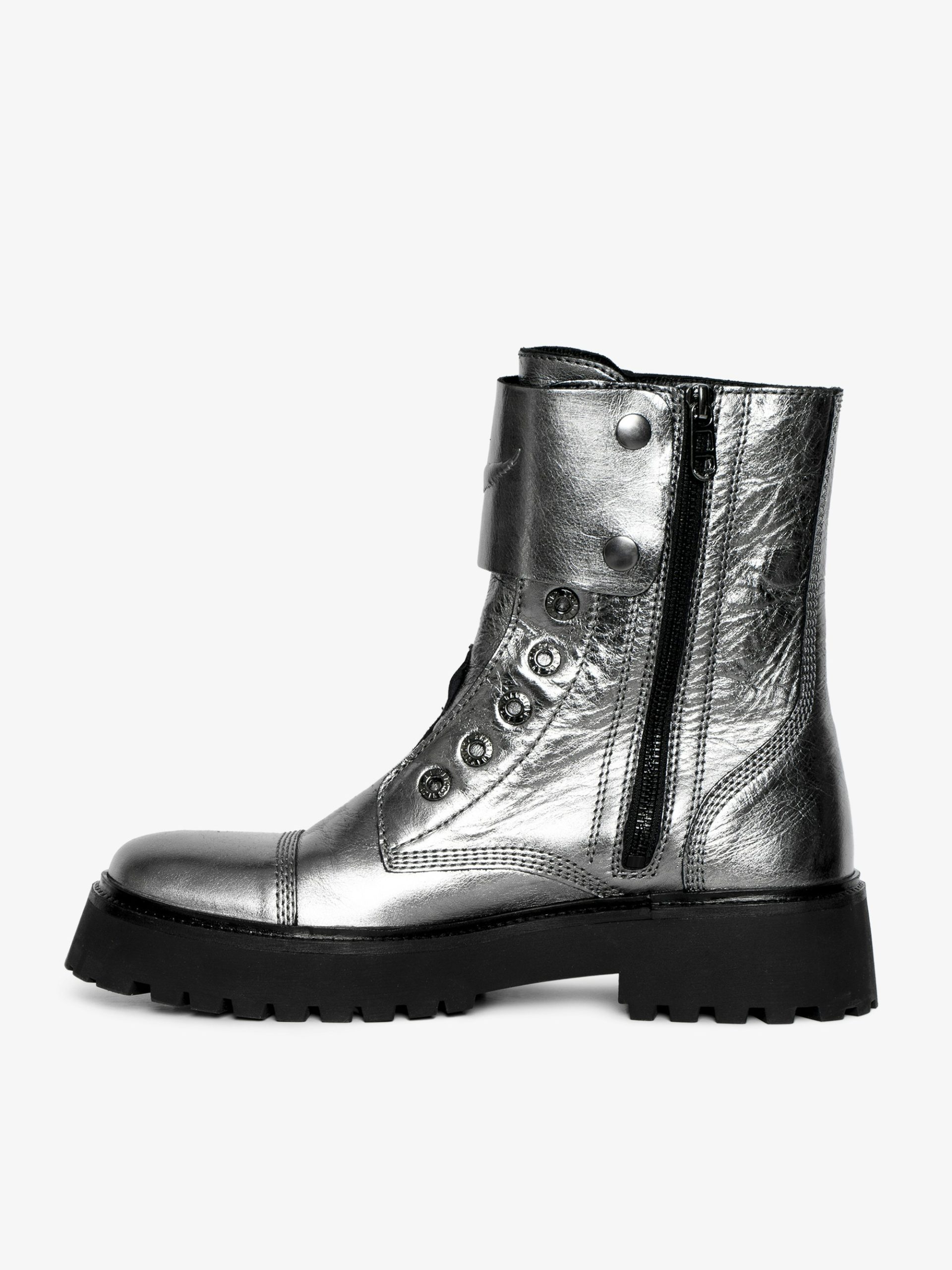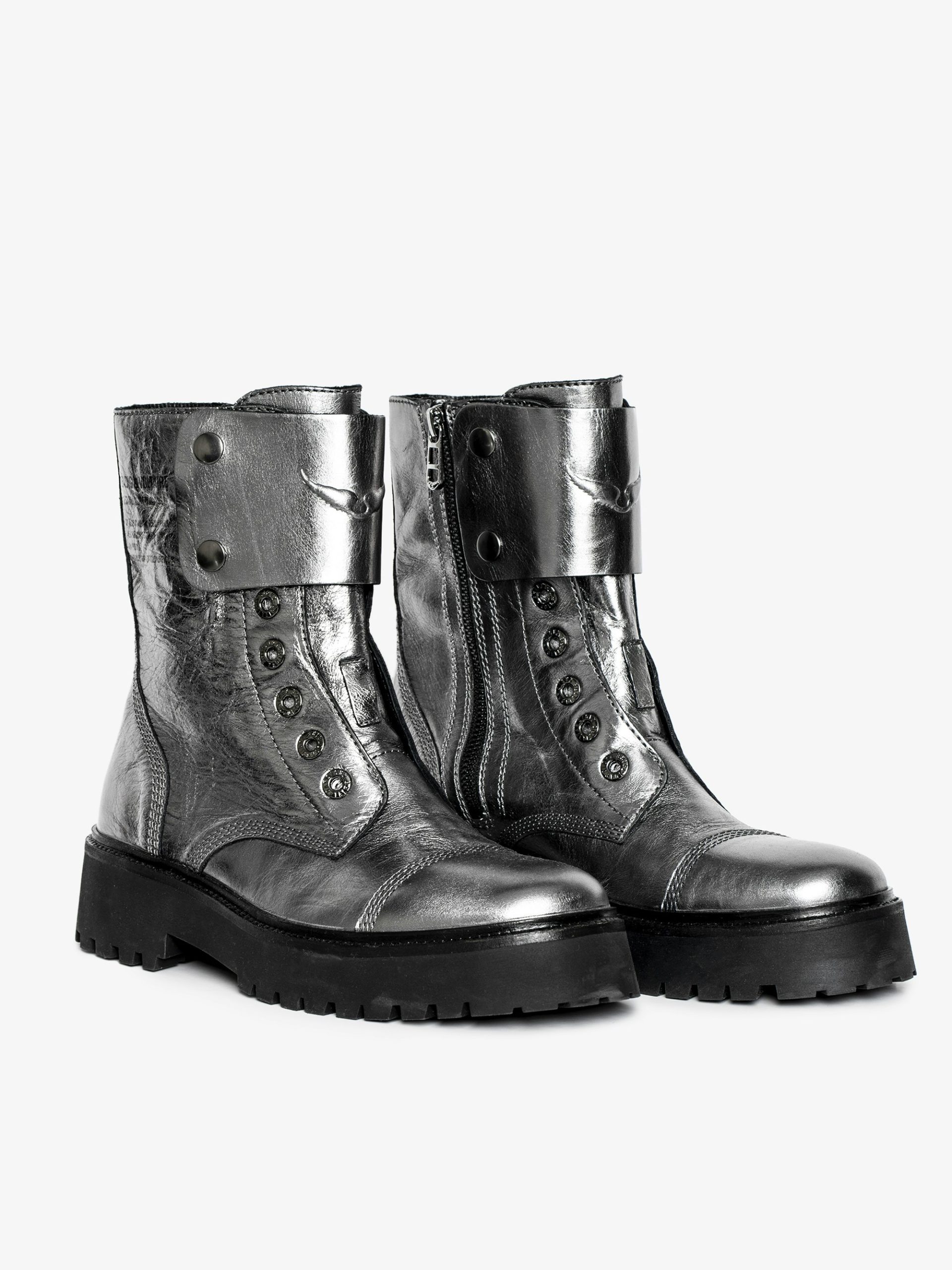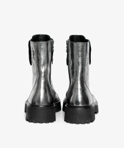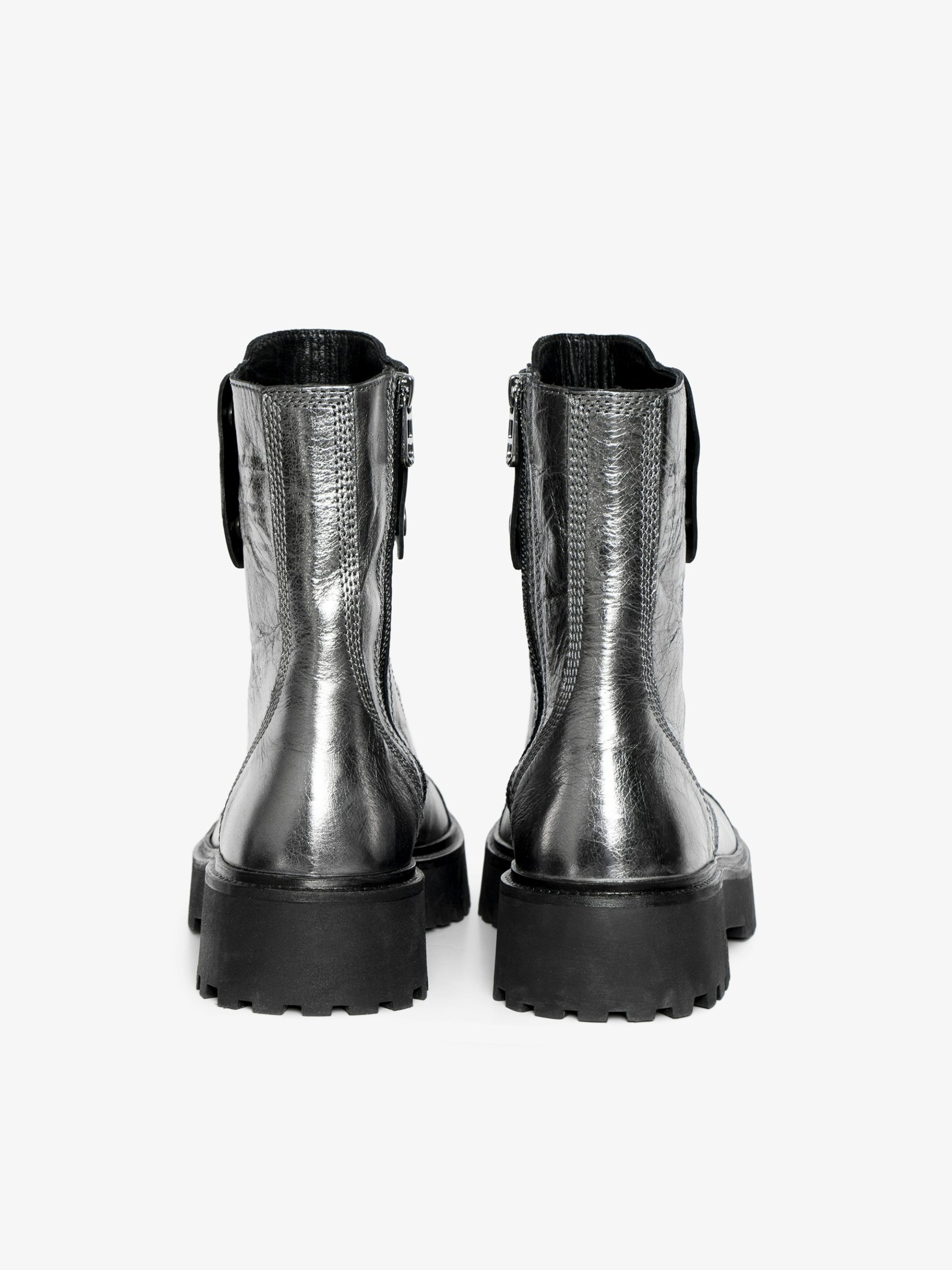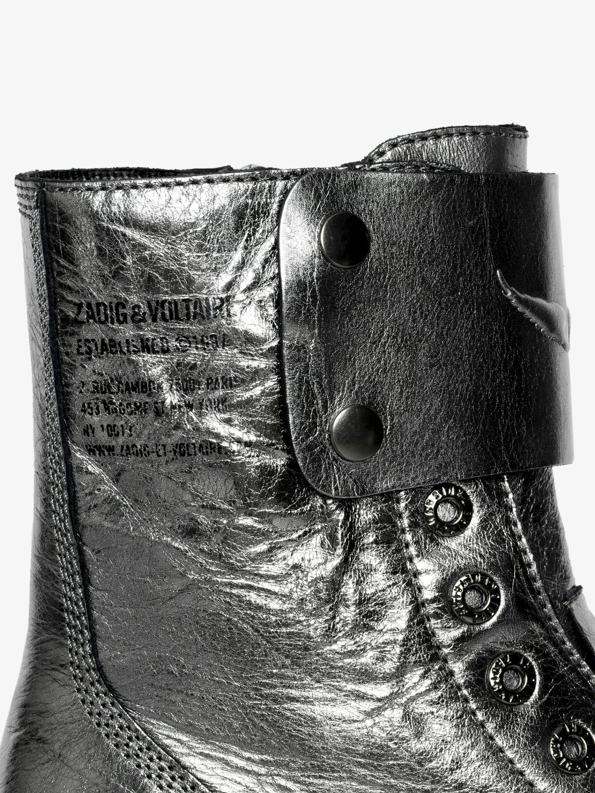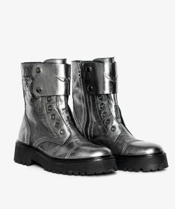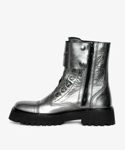 – Botines altos tipo rangers en piel arrugada metalizada